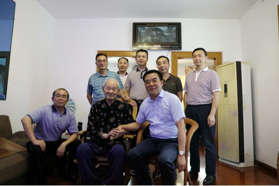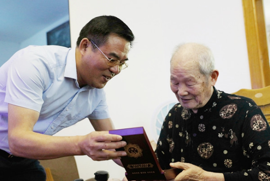 在彭泽滋老同志家中,老人一见面就紧紧抓住了陈岳堂的手,对学校给予的关怀表示十分开心。陈岳堂代表学校党委和行政为93岁高龄的彭老先生颁发纪念章,感谢他数十年来为学校各项事业发展作出的贡献,对他不忘初心、牢记使命、淡泊名利、甘于奉献的高尚情怀表达了崇高的敬意。感激之情溢于言表,聊天过程中一直紧握陈岳堂的手不愿松开。