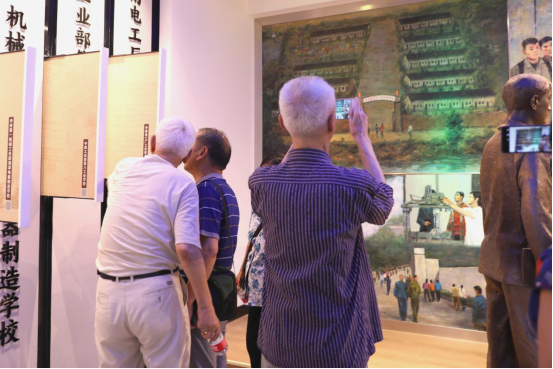 一幅幅生动的历史图片,一件件泛黄的历史资料和斑驳的实物,勾起老同志对峥嵘岁月的无限回忆。“你看你看,这个是我,这个是你……”他们有的戴着老花镜,俯下身子细细查看,在照片上仔细寻找着他们和学生“年轻时的模样”,回忆“曾经的岁月”,分享着仍记忆犹新的人和事;有的拿出手机,把展馆内的内容一一录下、拍下,留作以后慢慢体味;有的请人替自己在馆内拍照留念,要把这一切与曾经的青春岁月永留心中。