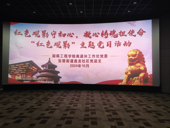 10月21日下午,学校离退休工作处党委携手宝塔街道盘龙社区党总支,共同举办了以“红色观影守初心,凝心铸魂担使命”为主题的红色观影党日活动,在天虹商场潇湘电影城内,全体成员共同观看了红色经典影片《志愿军:存亡之战》。
