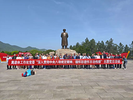 4月15日,离退休工作处党委组织党员,赴彭德怀元帅故里开展"主题党日活动。本次活动以缅怀开国元勋彭德怀同志的丰功伟绩为切入点,通过彭德怀元帅为民务实清廉的风范,引导离退休党员在历史镜鉴中汲取精神养分,进一步强化党性修养,践行新时代党员使命担当。