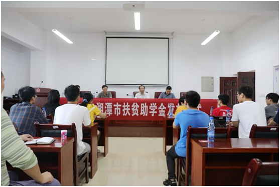 9月15日,2020年湘潭市爱心助学金发放仪式在电气楼408举行,我校15名学生收到资助。市关工委副主任成建云、陈少平出席,仪式由学校关工委办公室副主任叶险峰主持。