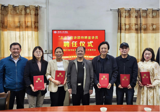 为充分发挥“五老”人员在学校思想政治教育中的重要作用,4月14日,学校关心下一代工作委员会举行了“五老”宣讲团特聘宣讲员聘任仪式。校关工委常务副主任罗忠烈,校关工委秘书长、离退处处长胡武平和“五老”宣讲团宣讲员参加。