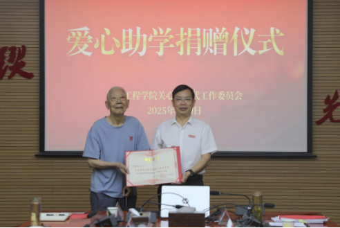 仪式在微视频《长明》中拉开帷幕。5分钟的短片回溯了程应森老校长的成长经历、工作经历,他在1952年入校学习以后,留校任教,退休后依然坚持自觉拥党爱党,为党育人,为国育才,诠释着共产党员坚定理想信念、赓续红色血脉、离岗不离党、退休不褪色的优秀品质。随后,程应森将爱心助学款郑重交到娄炳林手中,全场响起热烈掌声。黄昕代表学校向程应森颁发“捐资助学荣誉证书”。
