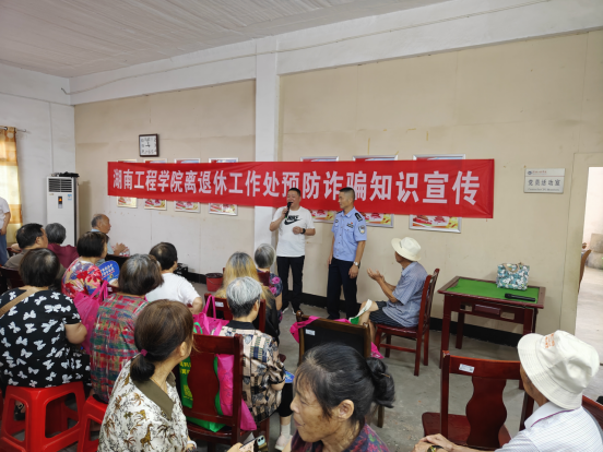 为进一步加大反电信诈骗及防范非法集资宣传工作力度,7月11日上午,我校离退休工作处携手岳塘区宝塔派出所、盘龙社区在学校主校区老年活动中心开展现场集中宣传活动。